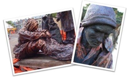 In the UK and the US, sculptures of people without housing are being placed on sidewalks as installations and art. http://museumofperipheralart.blogspot.com/2010/03/homeless-art.html