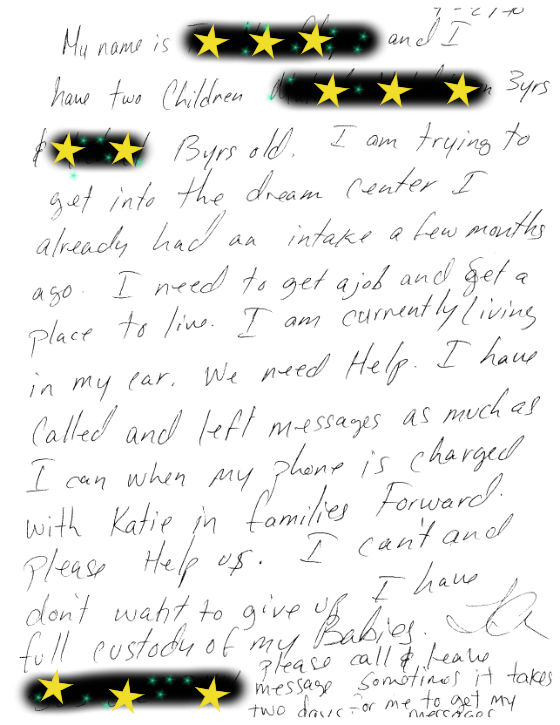 She brought her 3-year-old daughter. The little girl had curly brown hair and traces of strawberry juice across her growing smile while she talked to me about living in her car with her mother and 14-year-old brother.