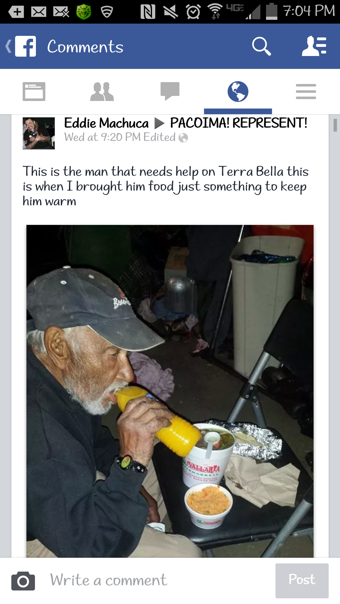 Homelessness is real  a nd affects everyone. Here, in Pacoima, this man is a fixture on a local street. The Facebook group for the neighborhood is learning the worst of all truths about homelessness: there is no easy cure.