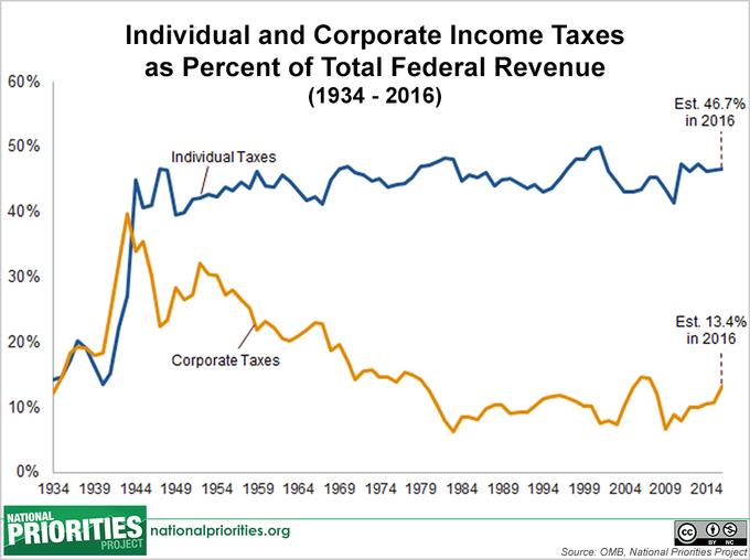 Do some light reading here: https://www.nationalpriorities.org/analysis/2015/tax-day-2015/tax-day-2015-seven-things-you-should-know-about-taxes/