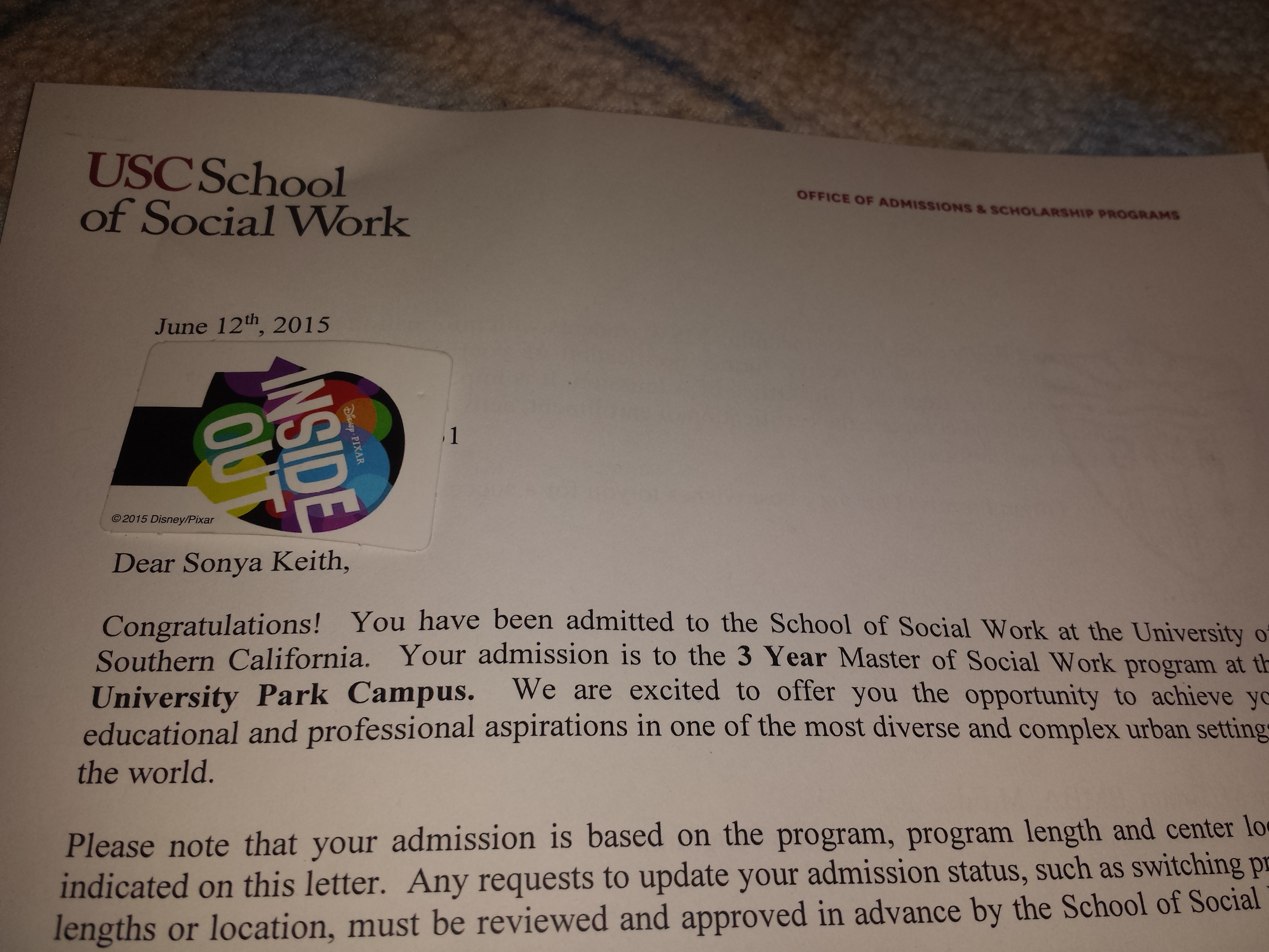 That is almost what it was like to go to my mailbox last night and found this letter.
