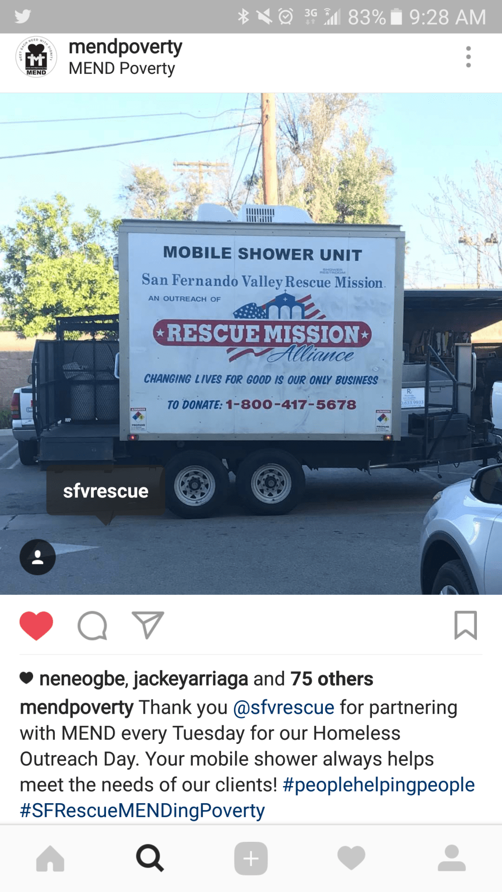 Posted on March 29, 2017March 29, 2017 by Homeless View this post on Instagram A post shared by MEND Poverty (@mendpoverty) The San Fernando Valley Rescue Mission and MEND combining together to bring hygiene and dignity to our neighbors who don’t have access to soap, water and privacy. #peoplehelpingpeople #mendpoverty Tell other peeps: Click to share on X (Opens in new window) X Click to share on Facebook (Opens in new window) Facebook Click to email a link to a friend (Opens in new window) Email Click to share on Pinterest (Opens in new window) Pinterest Click to share on LinkedIn (Opens in new window) LinkedIn Click to share on Pocket (Opens in new window) Pocket Click to share on Reddit (Opens in new window) Reddit Click to share on Tumblr (Opens in new window) Tumblr More Click to print (Opens in new window) Print Like Loading... Related
