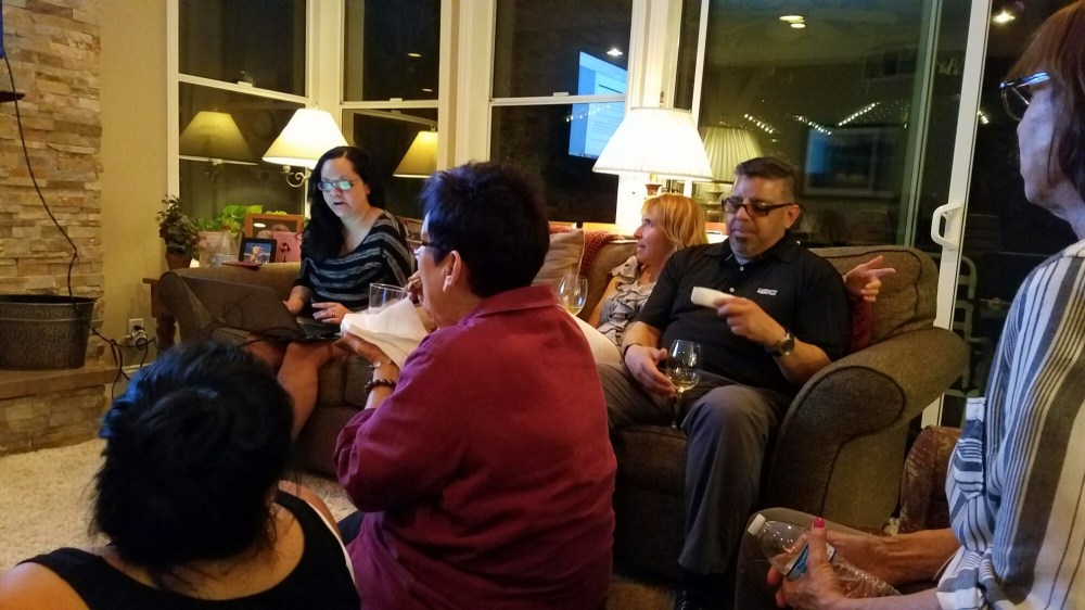If you look in the window you can see a reflection of a computer spreadsheet that is being projected from the television. Yasmin is walking us through comparisons to previous years and taking notes. We are always giving feedback.