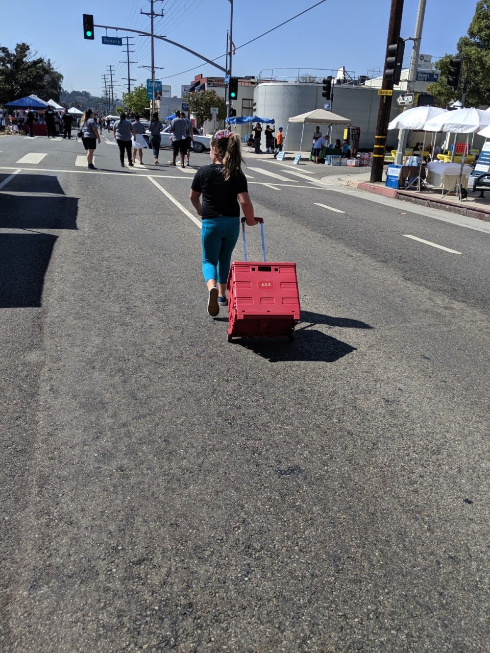 Disneyland is where she is normally allowed to walk in the middle of a street. Glendale Blvd is not Disney (but it is cool).