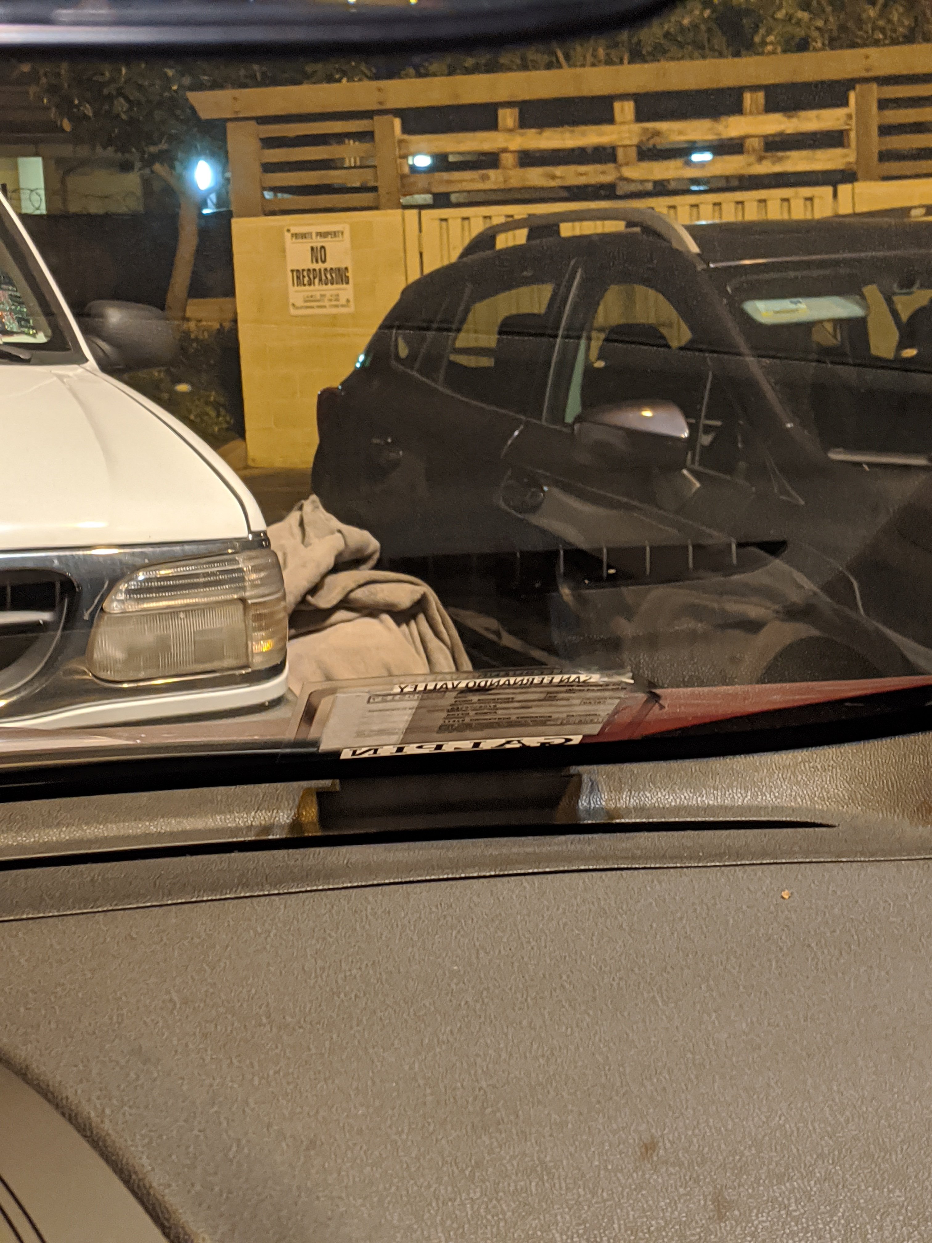 I am yards away from @MRodCD7 Monica Rodriguez’s district office in the Sunland Tujunga area at the Vons grocery store. As I climbed into my car my daughter and I noticed this person settling down for an evening of sleep between the cars.