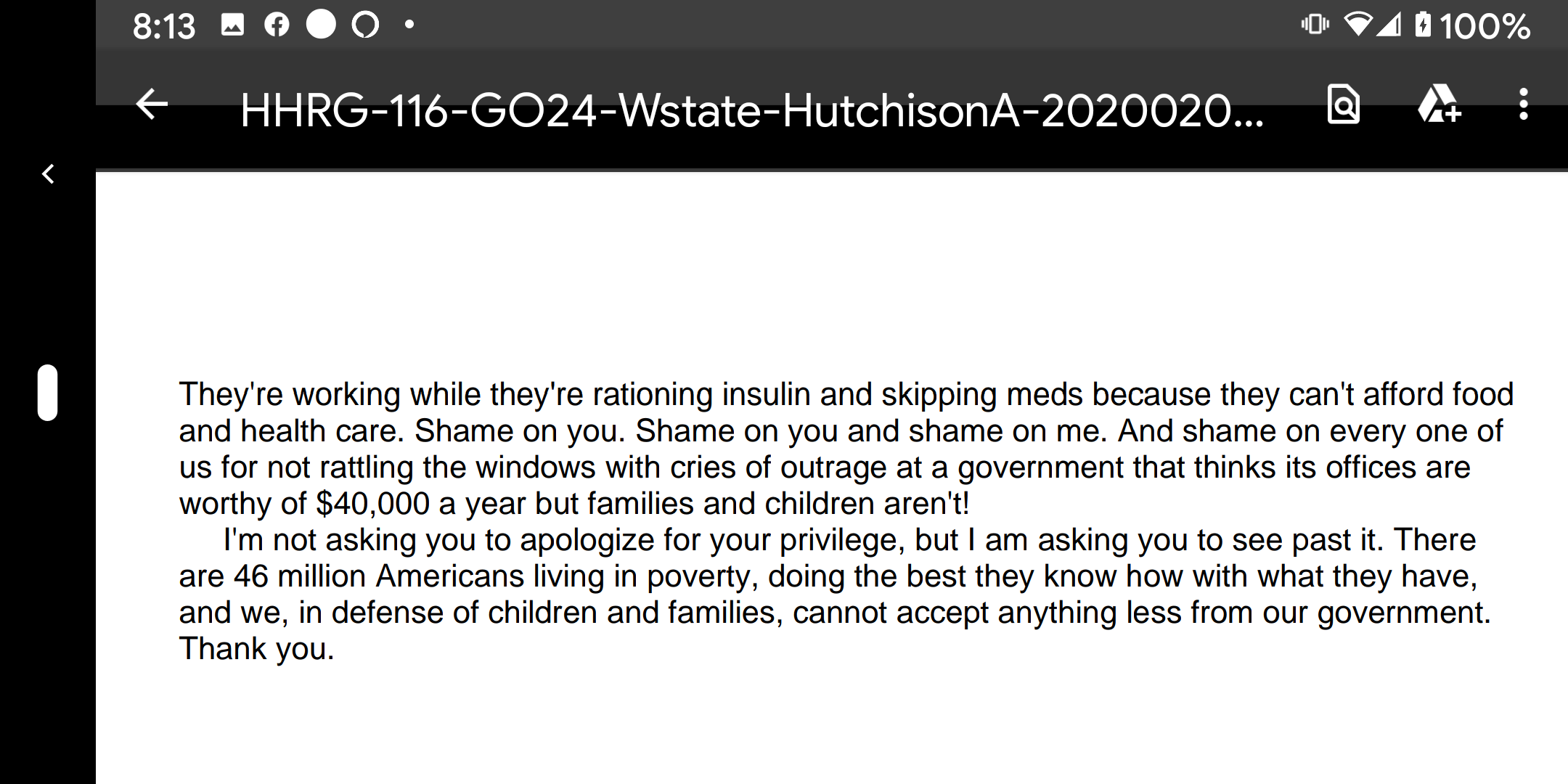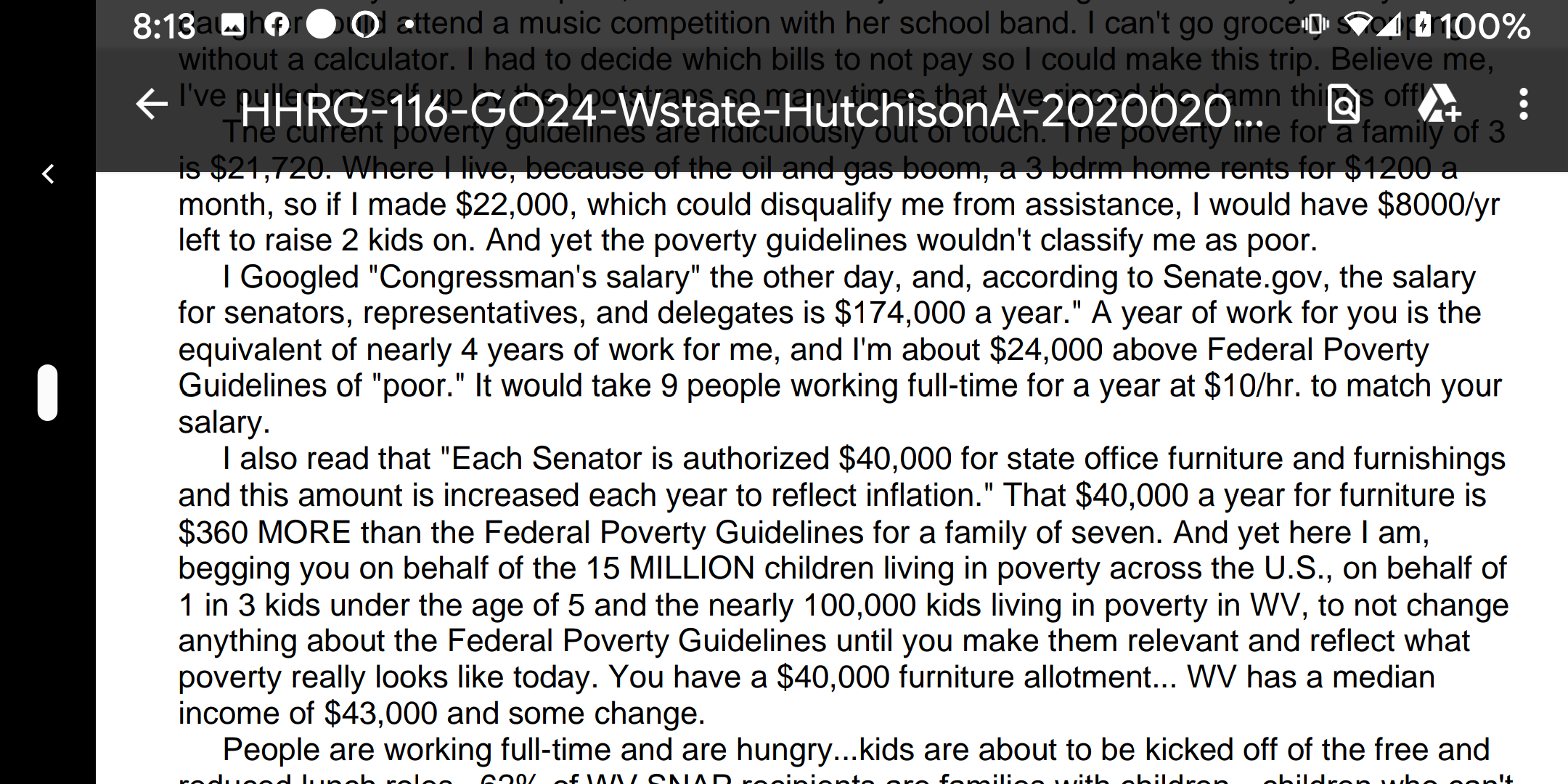 The poverty line does not reflect the cost of living in actual poverty. You can listen or choose to read her moving speech.