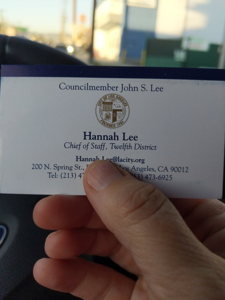 Would it be wrong to tell you how impressed I was with District 12 Councilman John Lee? Typically a few staff interns or members come to these events. John Lee had his entire office out in force.