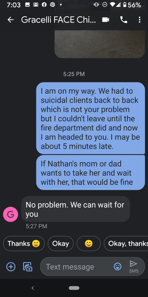 Today I was a little trapped at work and it takes about 40 minutes to get from Northridge to Pacoima. This was my panicked text.