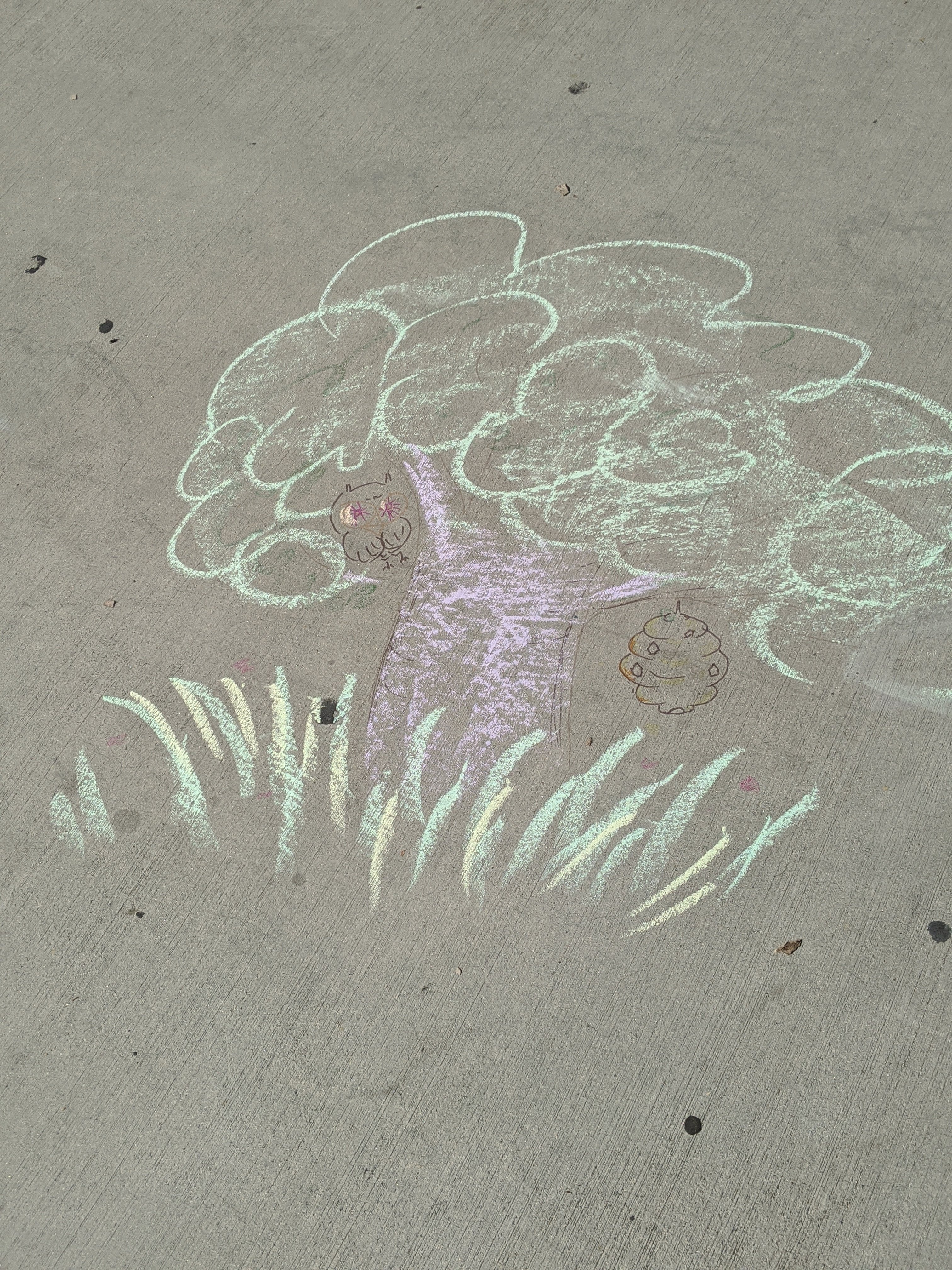 Before work today, Darla and I went in front of her elementary school and drew some pictures.