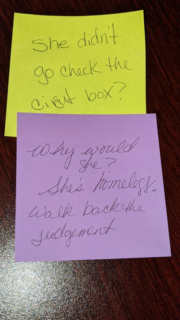 So I asked them, how would they have known? If they’ve been living in the street and attend or a box or a car, they haven’t dealt with electricity in a house before. How would they have known to flip the circuit breaker?
