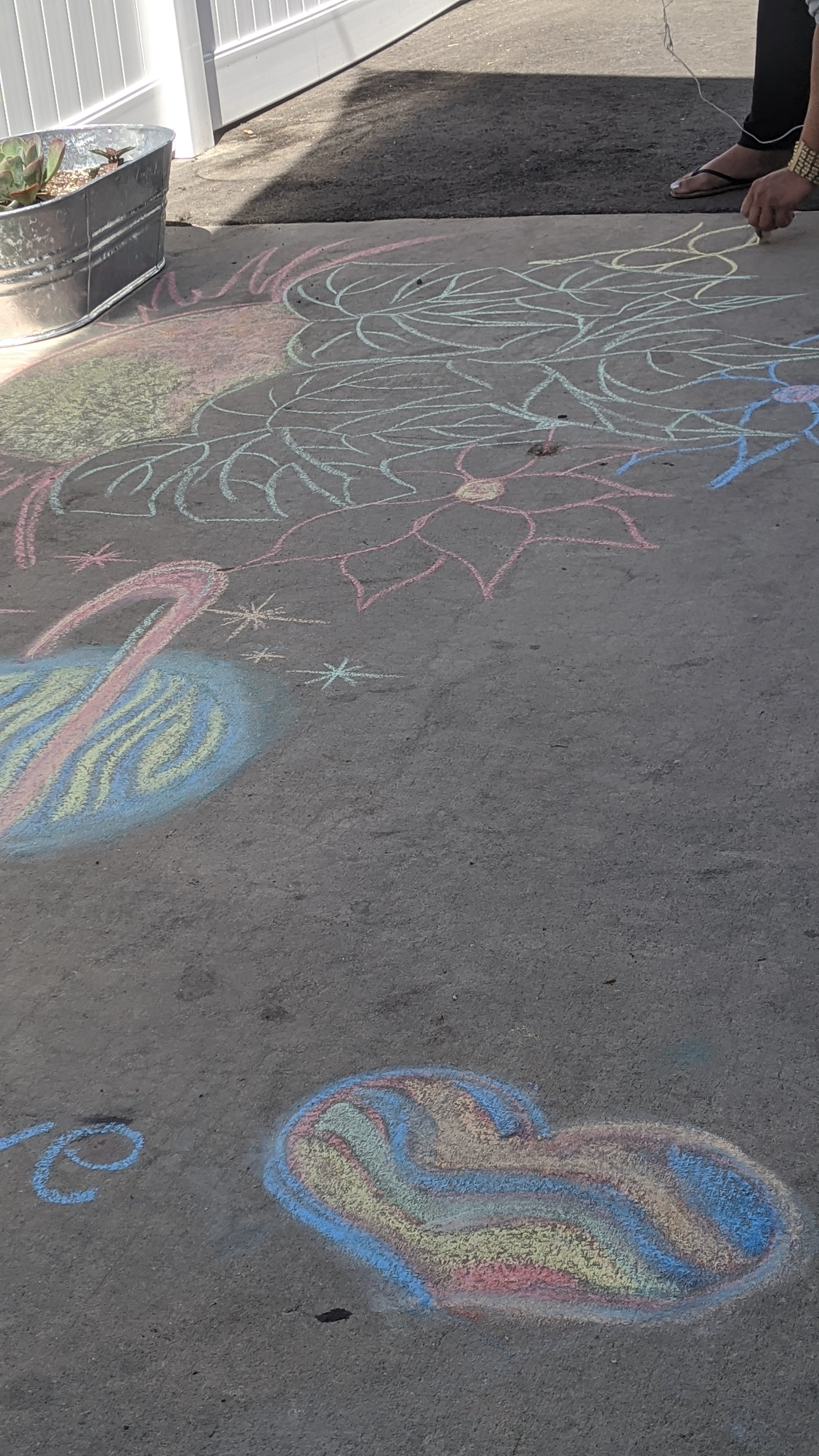 So I went to the 99 cent store and bought some sidewalk shock. I should have thought about what I was wearing and not been wearing a dress when I decided this would be a good idea.