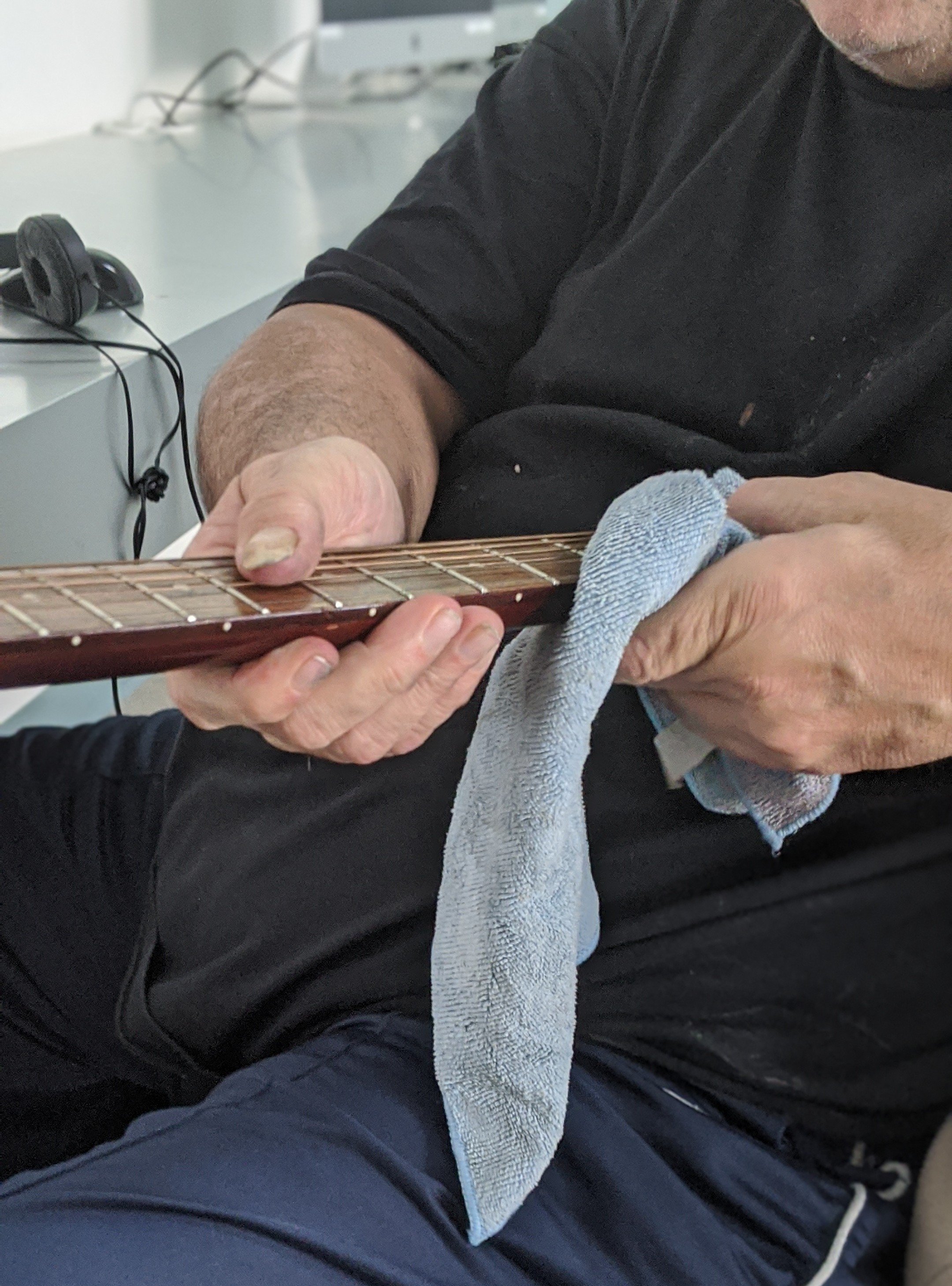 Every time I see him he is watching music videos on YouTube and playing air guitar. So today, I brought in my guitar.
